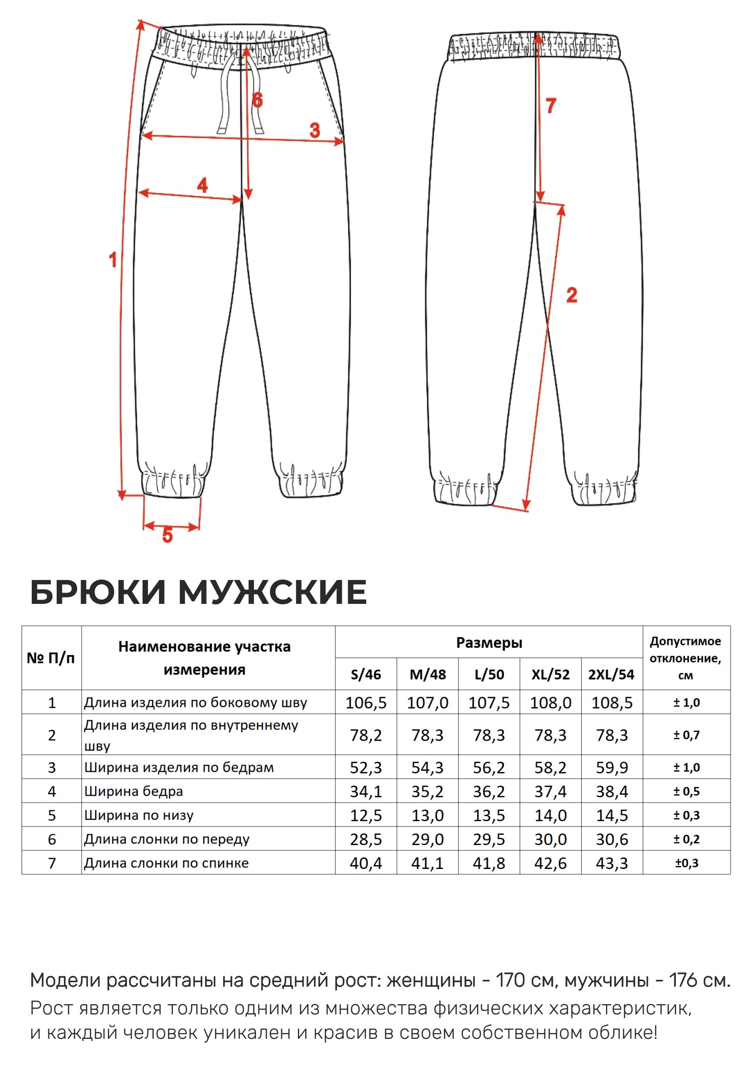 Параметры модели на фото -размер