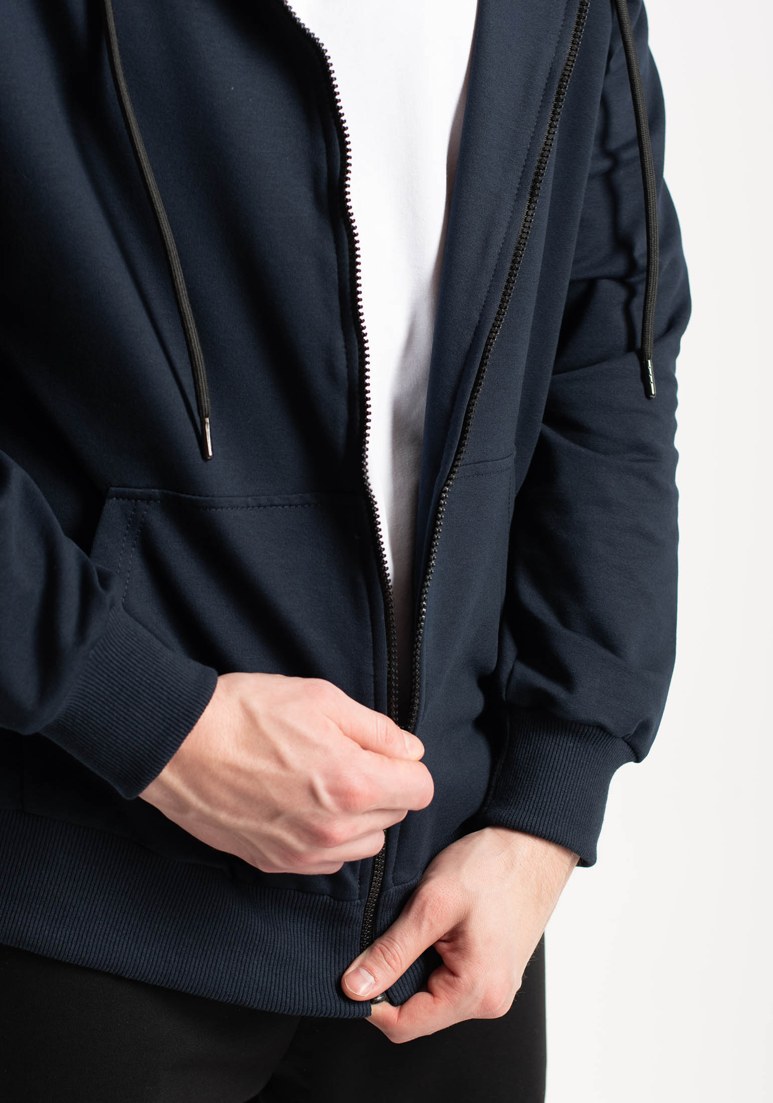 Мужская толстовка с капюшоном на молнии, выполнена из премиального качественного турецкого футера 2-ух нитки без начеса. Модель прямого силуэта, с рукавами реглан, изделие без подкладки. Объём капюшона толстовки регулируется шнуром. На полочке изделия объёмные и вместительные накладные карманы кенгуру. Рельефная эластичная трикотажная резинка по низу изделия и рукавам в одной гармоничной цветовой гамме с основным полотном изделия, но в то же время с мягким контрастом. Трендовый дизайн делает нашу толстовку стильной частью повседневного мужского гардероба. Свободный крой не стесняет Ваших движений. Мужская толстовка на молнии - это стиль, комфорт и практичность. Отличный вариант для занятий спортом, прогулок, рыбалки, охоты, похода и повседневной носки. Толстовку на молнии идеально носить весной, летом и осенью и ею можно заменить ветровку и олимпийку. Она станет лучшим подарком мужу, сыну, любимому или папе. Гладить с изнанки. Стирка при t не более 30С. Деликатный отжим, отбеливание запрещено.