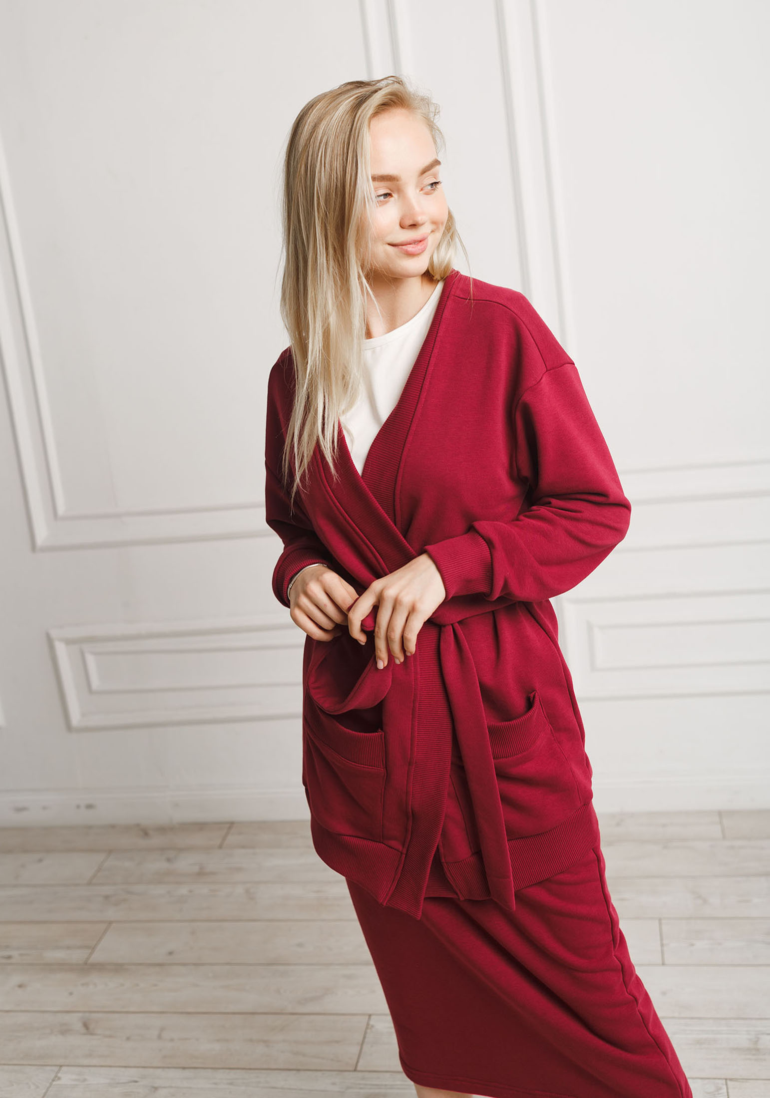 Невероятно удобный и практичный кардиган с поясом из высококачественного турецкого футера 3-ех нитки без начеса со сдвоенными размерами. На полочке изделия два вместительных накладных кармана. На спинке изделия брендированная нашивка из экокожи. Наш элегантный кардиган сделает ваш силуэт классическим, деловым, нарядным. Модный трикотажный кардиган – это совершенно универсальный элемент гардероба, с ним можно создать красивые образы на работу, в институт, в школу, в офис, на вечеринку, сочетая с совершенно любой обувью. Кардиган согреет Вас не только осенью или зимой, но ранней весной, и прохладным летним вечером. Гладить с изнанки.