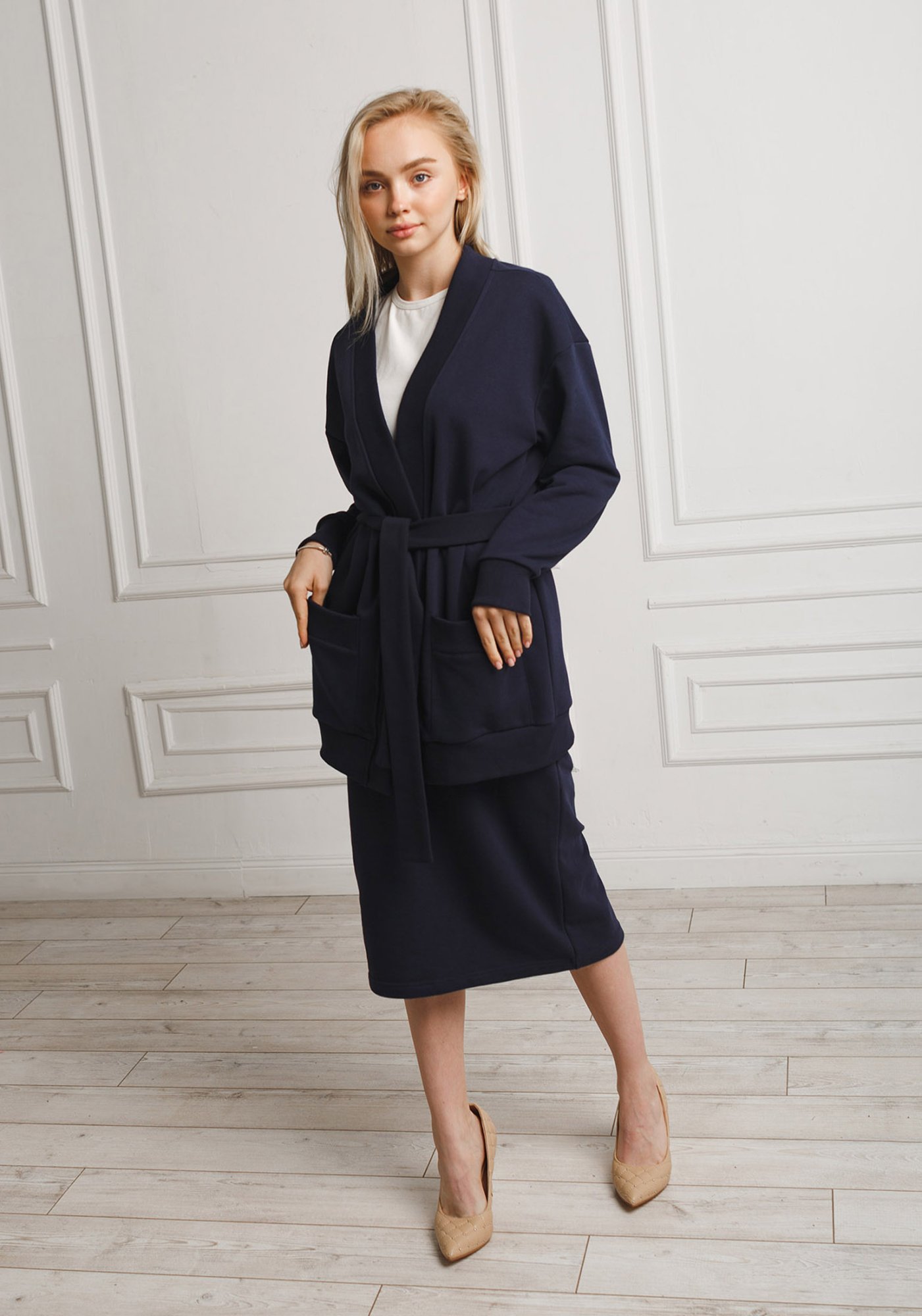 Невероятно удобный и практичный кардиган с поясом из высококачественного турецкого футера 3-ех нитки без начеса со сдвоенными размерами. На полочке изделия два вместительных накладных кармана. На спинке изделия брендированная нашивка из экокожи. Наш элегантный кардиган сделает ваш силуэт классическим, деловым, нарядным. Модный трикотажный кардиган – это совершенно универсальный элемент гардероба, с ним можно создать красивые образы на работу, в институт, в школу, в офис, на вечеринку, сочетая с совершенно любой обувью. Кардиган согреет Вас не только осенью или зимой, но ранней весной, и прохладным летним вечером. Гладить с изнанки.