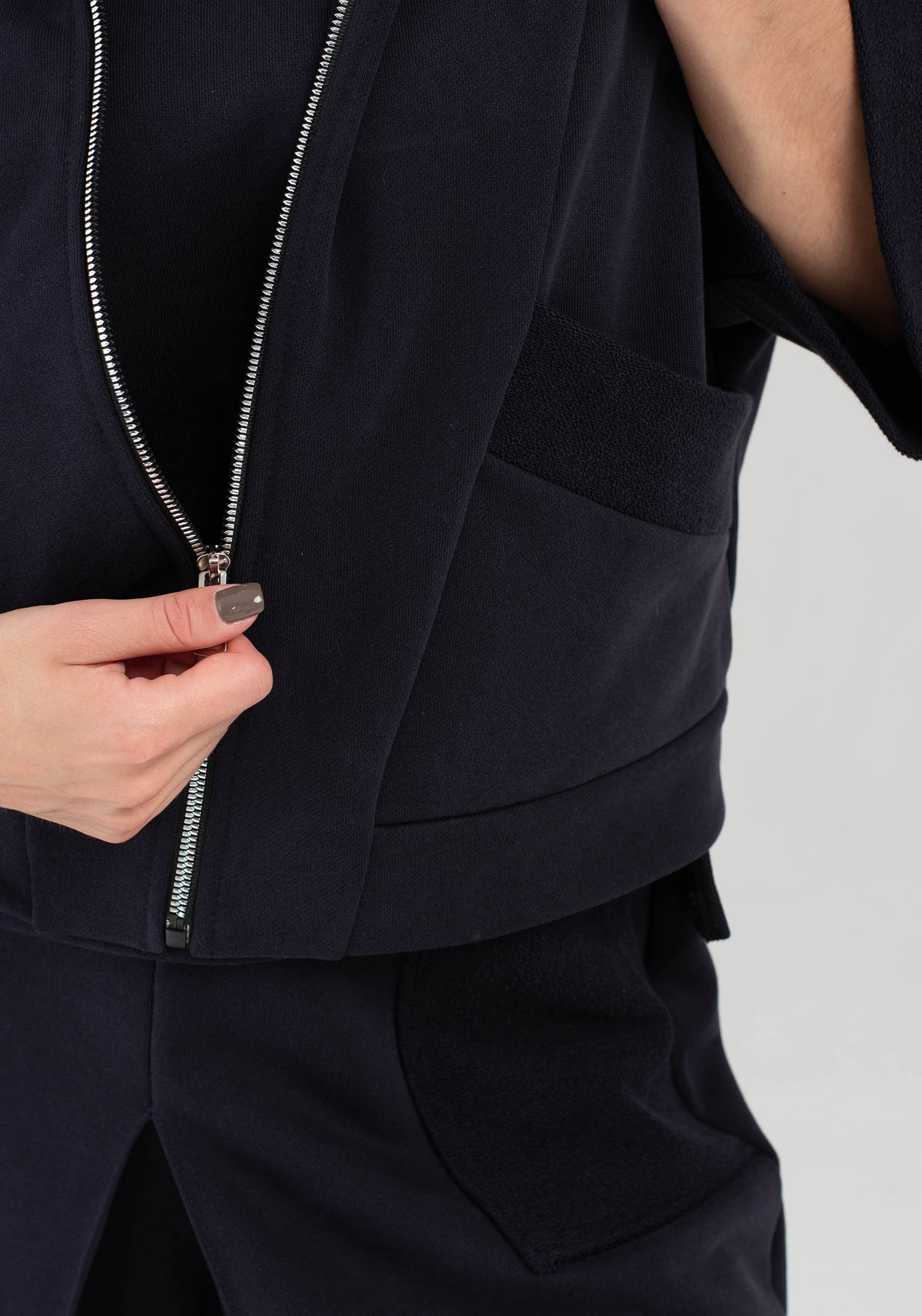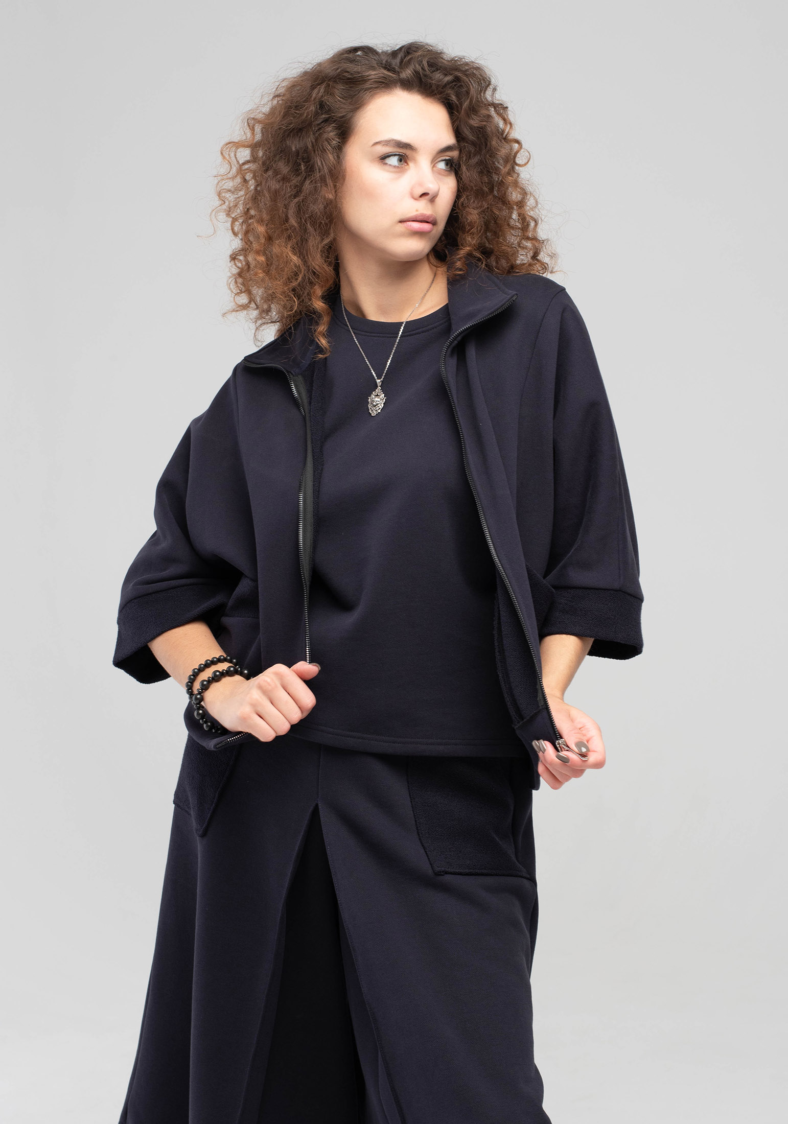 Эффектный кардиган в стиле спорт-шик на молнии, с широкими укороченными рукавами 3/4, выполнен из высококачественного турецкого футера 3-ех нитки без начеса. Элегантный образ создаётся за счёт рельефов на спинке и полочках, а так же шикарных вместительных накладных карманов. На рукавах и карманах отвороты, благодаря которым видно красивую фактуру футера. Кардиган с застёжкой молнией и резинкой в поясе по низу спинки изделия. Наша одежда свободного кроя - идеальное решение на каждый день. Такой крой даёт ощущение комфорта, свободы и раскованности. Наша актуальная модель будет прекрасным подарком на новый год, к 8 марта, день святого Валентина, на день рождение, на день матери. Сделано в России с любовью к Вам! Гладить с изнанки. Стирка при t не более 30С. Деликатный отжим, отбеливание запрещено. При соблюдении наших несложных правил ухода одежда DS будет радовать Вас долгое время!