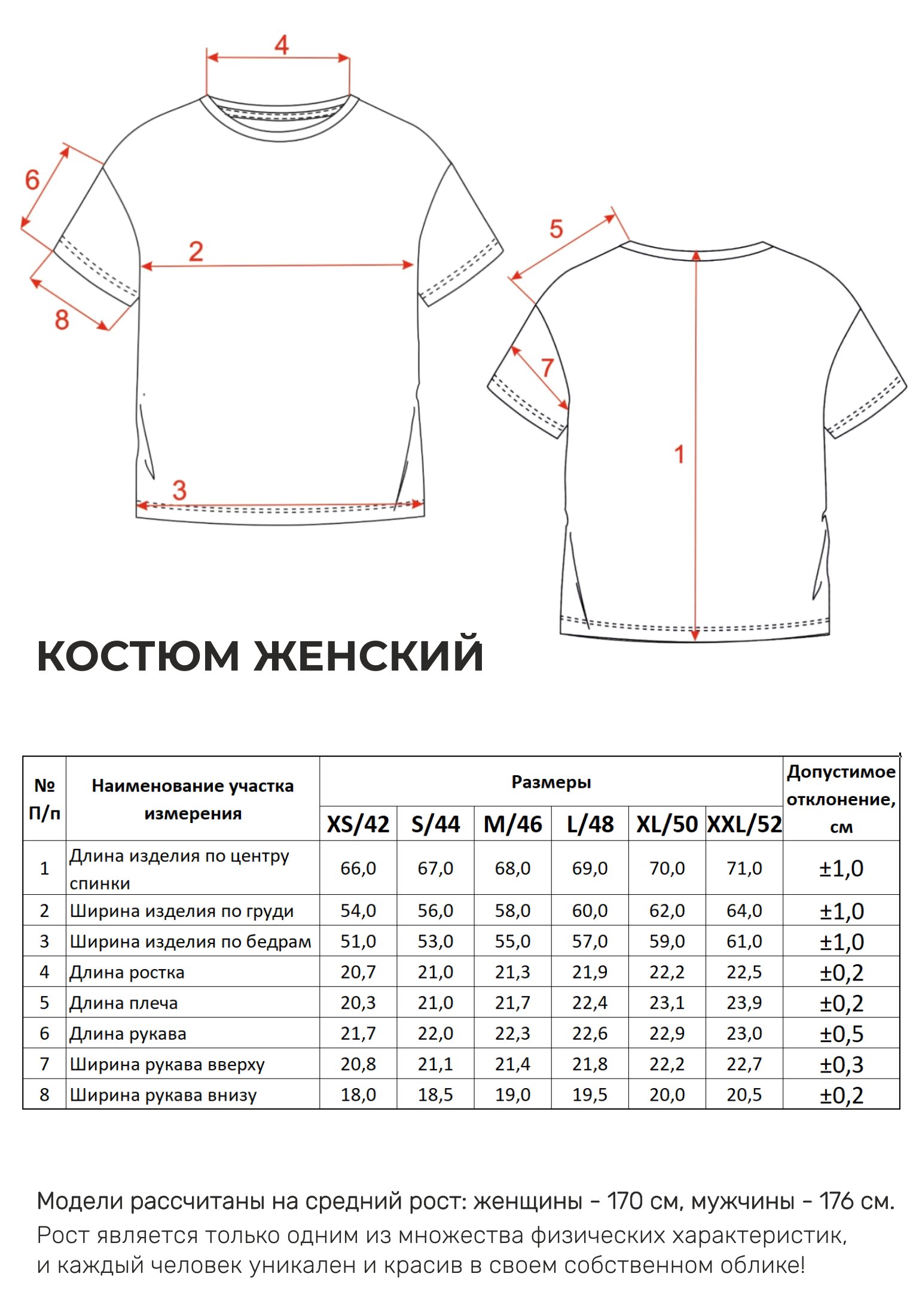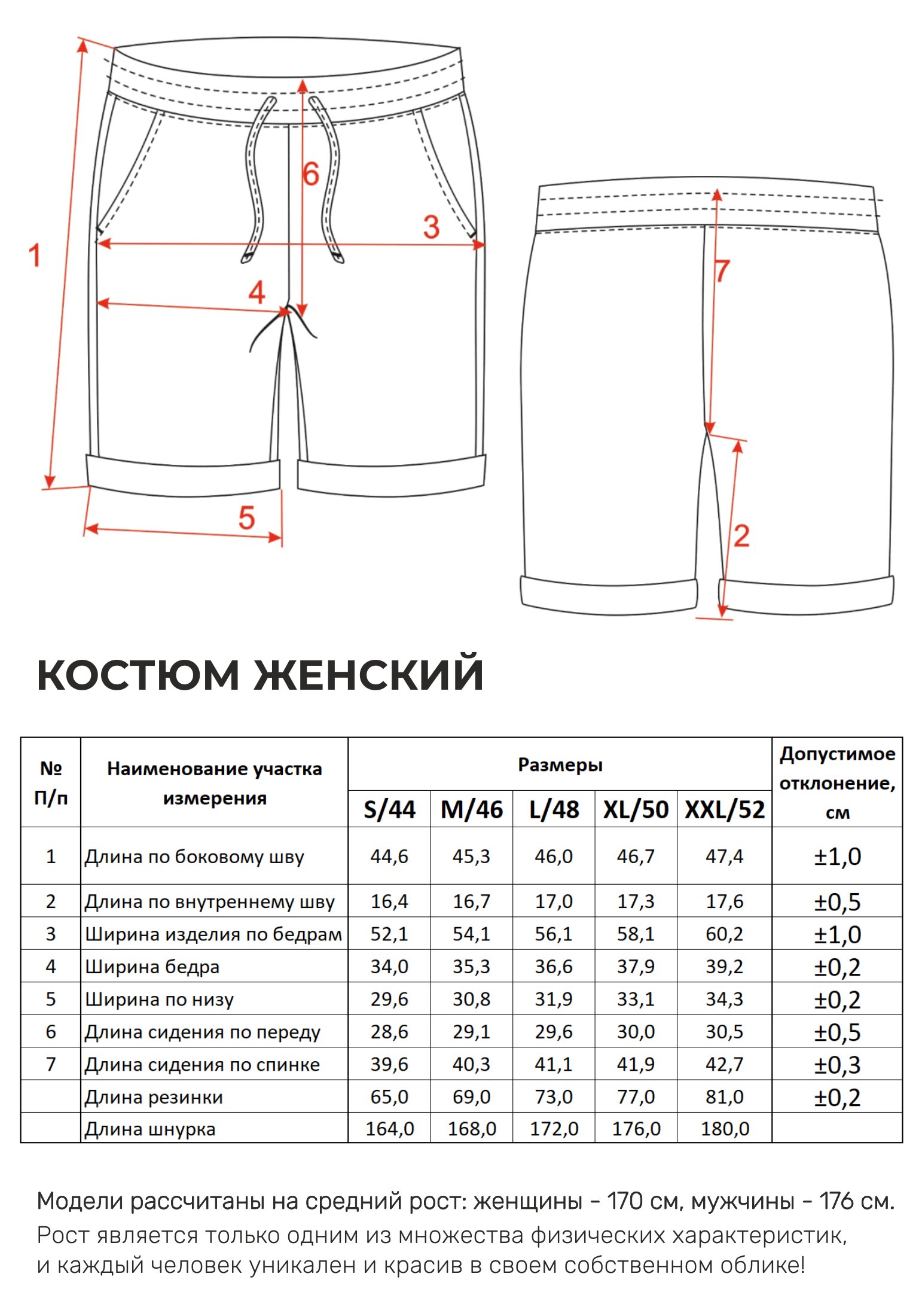 Параметры модели на фото -размер