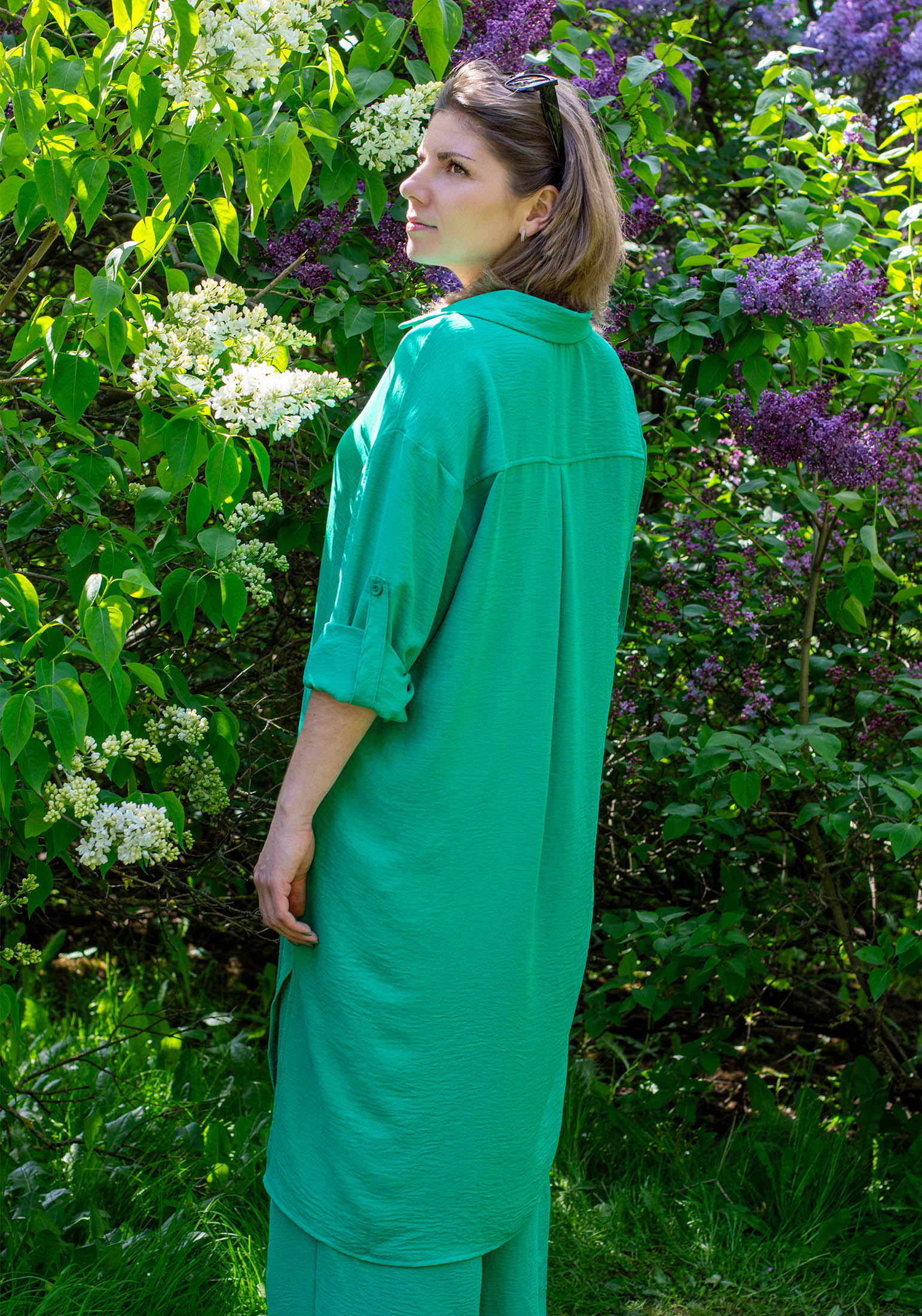 Летний женский костюм - идеальный выбор для стильных и модных девушек и женщин. Наш костюм состоит из брюк палаццо свободного силуэта и удлинённой рубашки с поясом. Комплект обладает оригинальным дизайном, изделия выполнены из текстильного жатого полотна дорна. Костюм ОВЕРСАЙЗ из легкой струящейся ткани - отличный вариант для повседневной носки, особенно в летнюю жаркую погоду. На поясе брюк удобная и широкая резинка, два вместительных функциональных боковых кармана. Легкие и свободные брюки палаццо универсальны, их можно носить на пляже, дома и на отдыхе, с рубашкой и с любым другим верхом: топом, майкой, футболкой, блузкой, кофтой. Рубашка оверсайз с пуговицами и прямые брюки на резинке создадут идеальный комплект для любого торжества. Так же комплект можно носить по раздельности, создавая множество стильных образов. Рубашку можно носить отдельно и с любым низом и как платье с поясом. Универсальный рукав длинный, но его легко трансформировать в рукав 3/4, благодаря удобной застежке. Рубашку можно носить как платье летнее или домашнее, так и как легкую накидку в прохладные вечера. Наша одежда свободного кроя - идеальное решение на каждый день. Такой крой даёт ощущение комфорта, свободы и раскованности - настоящая находка на жаркое лето! Отличный и незаменимый вариант повседневного гардероба, обеспечивающий свободу движений. Легкость, удобство, отличная воздухопроницаемость - все это делает нашу модель идеальным выбором! Удобный крой нашего костюма подойдет как для женщин и девушек с идеальными параметрами, так и для представительниц больших форм. Костюм прекрасно подойдет для дома, для отдыха на пляже, на море. Он будет идеален как пляжный вариант, благодаря легкой быстросохнущей ткани. Наша актуальная нарядная модель будет прекрасным подарком на новый год, к 8 марта, день святого Валентина, на день рождение, на день матери. Сделано в России с любовью к Вам! Гладить с изнанки. Стирка при t не более 30С, ткань после стирки дает небольшую усадку! Деликатный отжим, отбеливание запрещено. При соблюдении наших несложных правил ухода одежда DS будет радовать Вас долгое время!