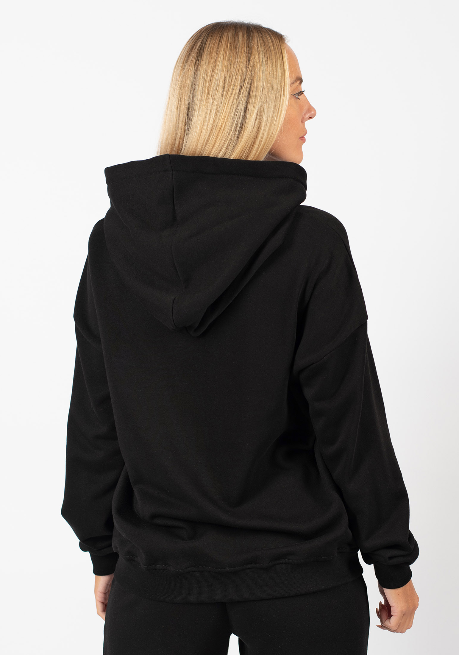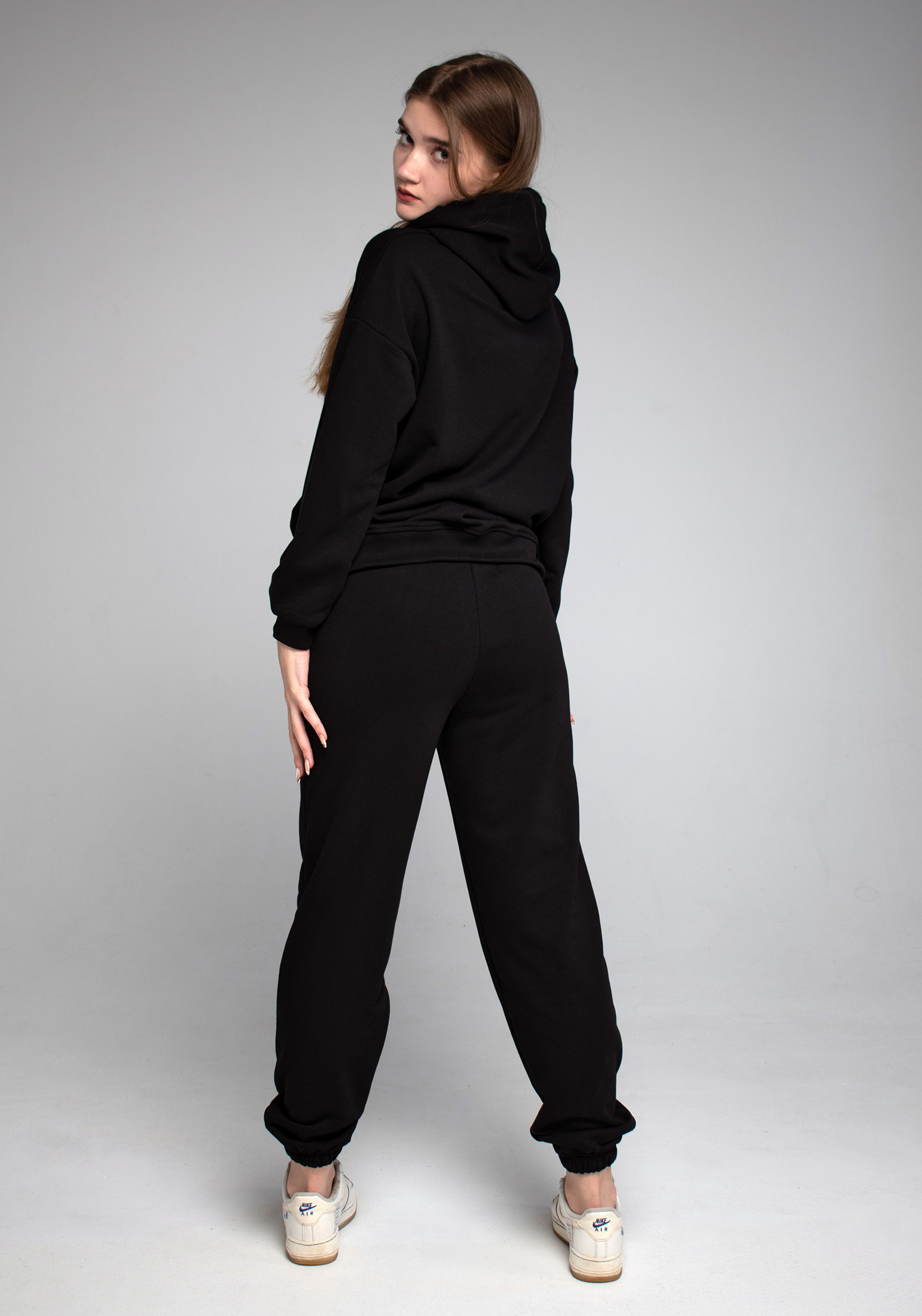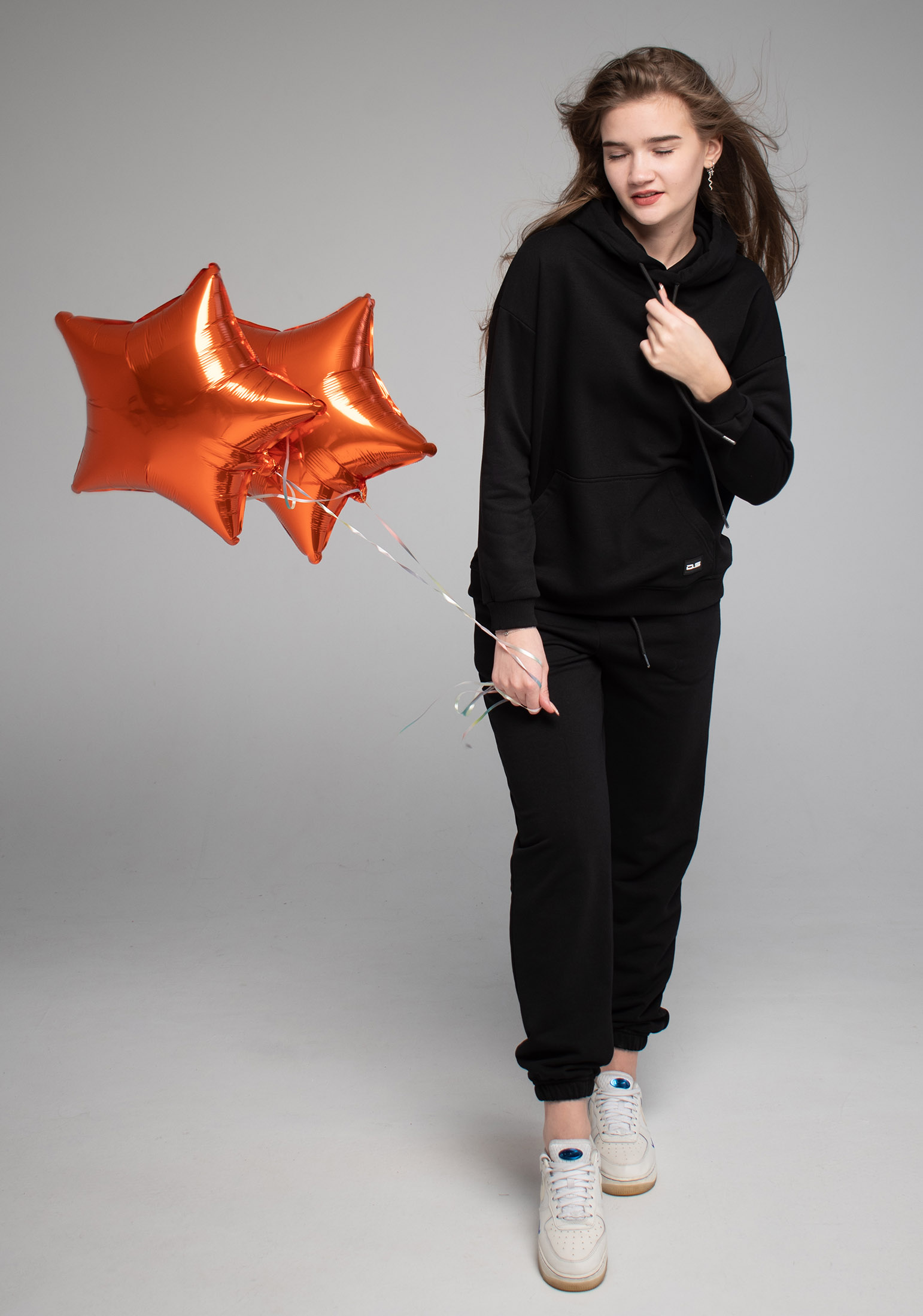 Женский спортивный костюм выполнен из футера 3-ух нитки без начеса . В комплекте: худи и джоггеры из мягкого хлопка. На поясе брюк удобная и широкая резинка под шнуровку, что позволяет дополнительно регулировать изделие по объему, два боковых кармана . Худи свободного кроя, судобным карманом «кенгуру». Модель без застёжки. Капюшон худи регулируется шнуром, несъемный, с подкладкой из основного полотна. Основной акцент – авторский принт. Эластичная тесьма по низу изделия и рукавам. Отличный вариант для прогулок , занятий спортом и повседневной носки.Гладить с изнанки. Стирка при t не более 30С. Деликатный отжим, отбеливание запрещено.