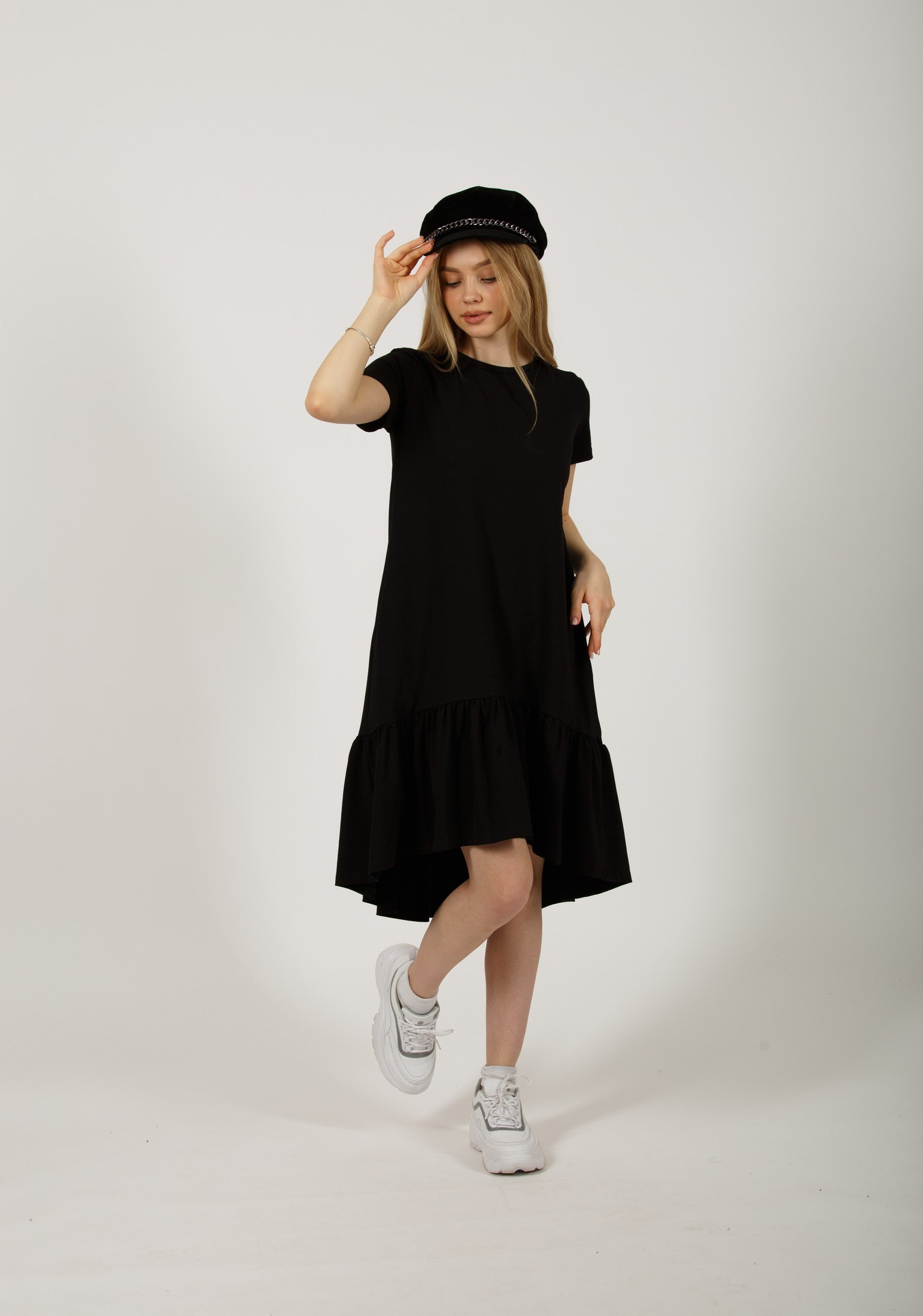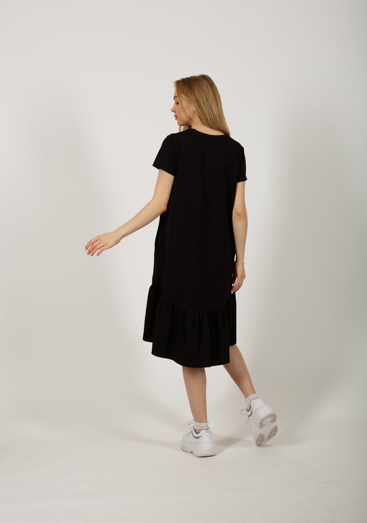 Стильное платье, свободного кроя, выполнено из премиального турецкого трикотажа. Это модель, которая должна быть в гардеробе каждой девушки. Платье с футболочнымвтачным рукавом, с женственной оборкой по низу изделия. Отличный вариант на каждый день, особенно в жаркий летний день: в офис, на прогулку, на отдых и даже дома. Идеально смотрится на любой фигуре, не сковывает движения и скрывает все недостатки. Гладить с изнанки. Стирка при t не более 30С. Деликатный отжим, отбеливание запрещено.