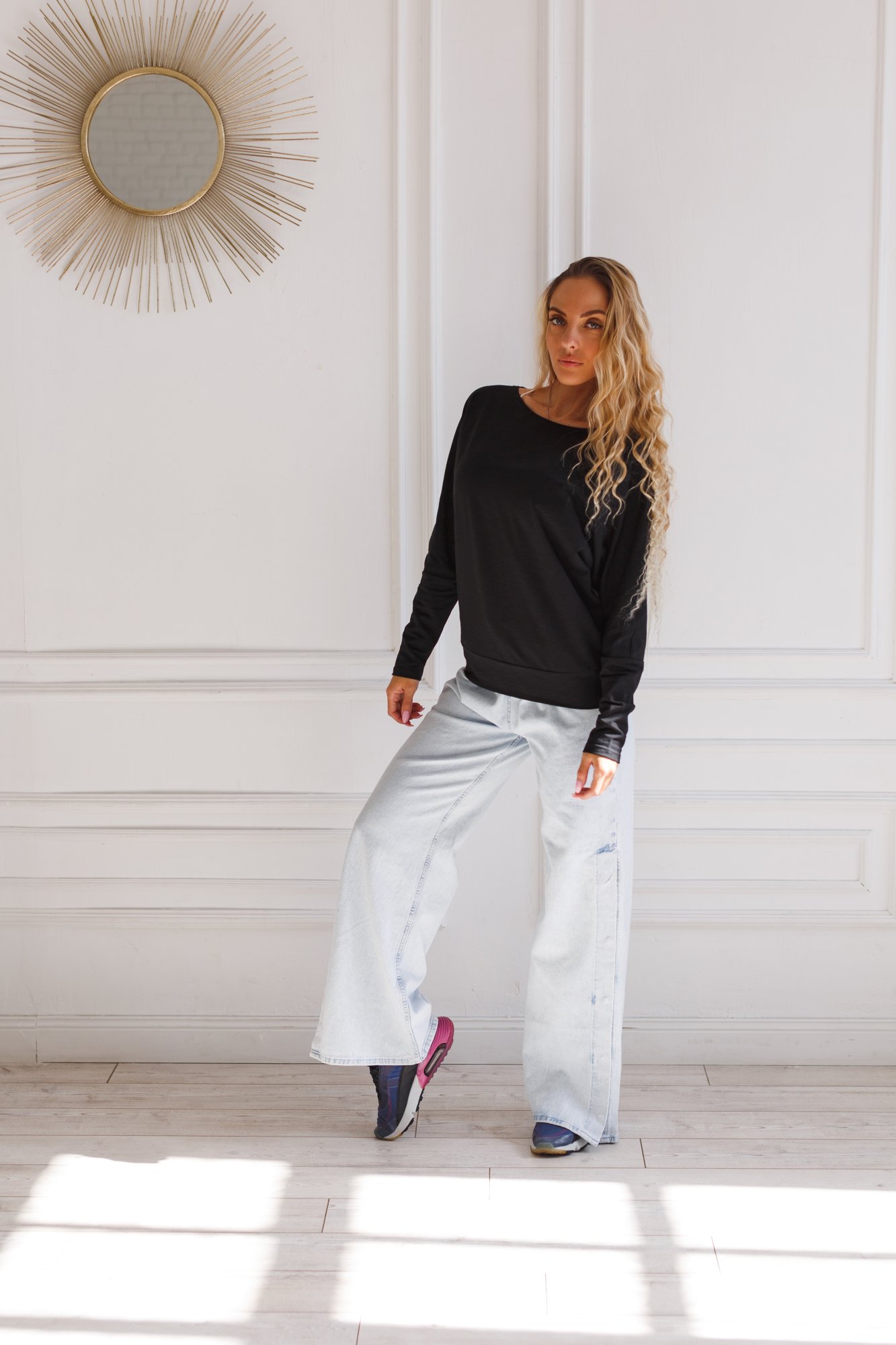 Элегантный женственный свитшот свободного кроя, в стиле "Летучая мышь". Модель выполнена из премиального турецкого футера 2-ух нитки Paris Slub. Оригинальный дизайн делает свитшот для женщин стильной частью повседневного гардероба, сочетается с джинсами, брюками и юбками. Гладить с изнанки. Стирка при t не более 30С. Деликатный отжим, отбеливание запрещено.