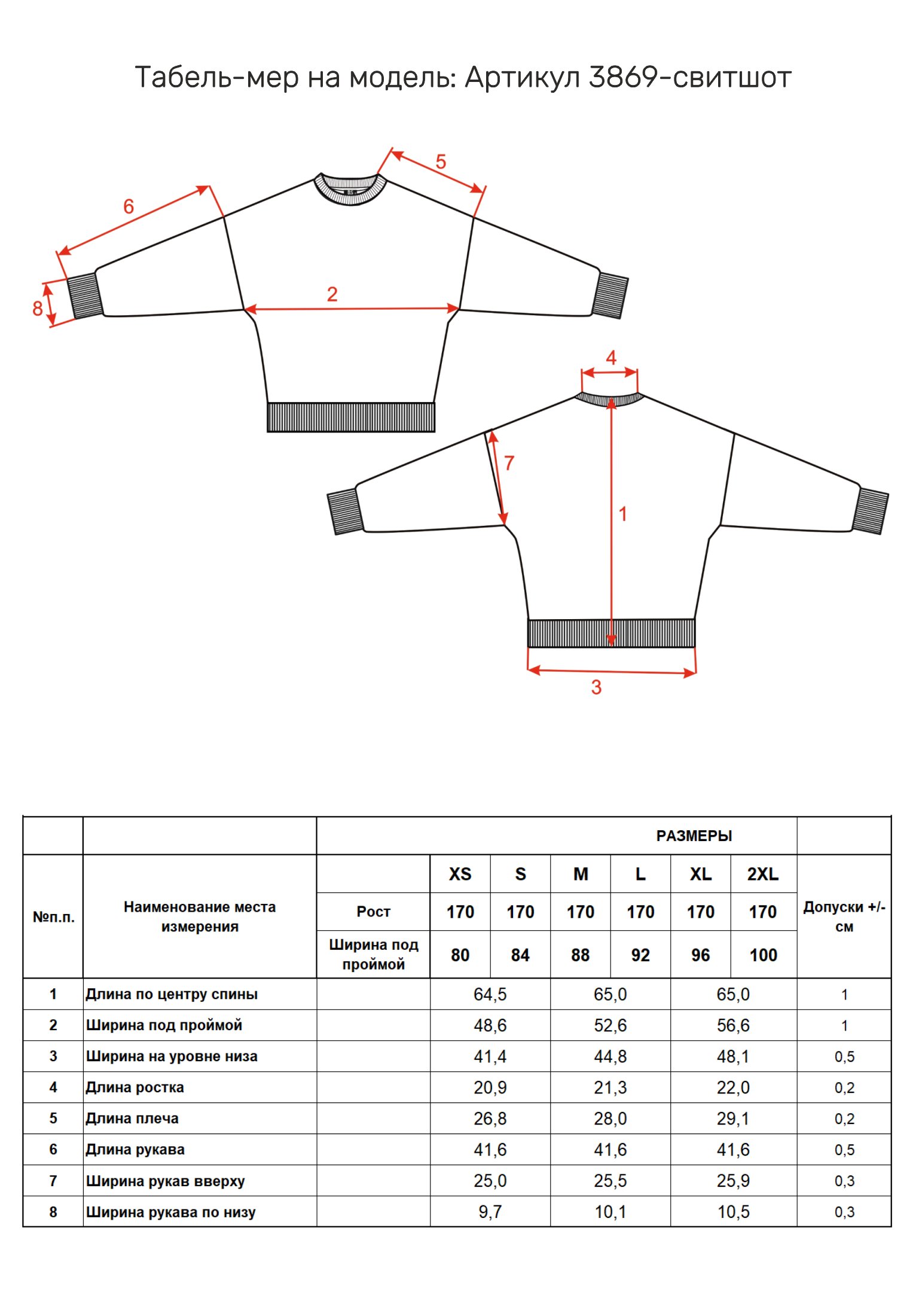 Таблица размеров