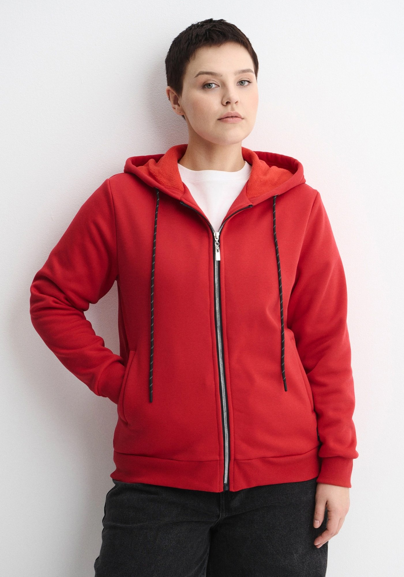 Женская тёплая толстовка с капюшоном, на молнии, выполнена из качественного мягкого трикотажного полотна – интерсофт (футер с флисом). Модель прямого силуэта, изделие без подкладки. Объём капюшона толстовки регулируется шнуром. На полочке изделия объёмные и вместительные карманы с листочками. Рельефная эластичная трикотажная резинка по низу изделия и рукавам. Трендовый дизайн делает нашу толстовку стильной частью повседневного женского гардероба. Свободный крой не стесняет Ваших движений. Женская базовая толстовка на молнии - это стиль, комфорт и практичность. Отличный вариант для занятий спортом, прогулок, рыбалки, охоты, похода и повседневной носки. Толстовку на молнии идеально носить весной, летом и осенью и ею можно заменить ветровку и олимпийку, бомбер или худи. Легкий и функциональный материал изделия обеспечит комфорт в любое время года: свойство ткани позволяет выводить лишнюю влагу, сохранять тепло, и оставлять тело сухим. Наша толстовка станет лучшим подарком на любой праздник! Гладить с изнанки. Стирка при t не более 30С. Деликатный отжим, отбеливание запрещено. При соблюдении наших несложных правил ухода одежда DS будет радовать Вас долгое время!