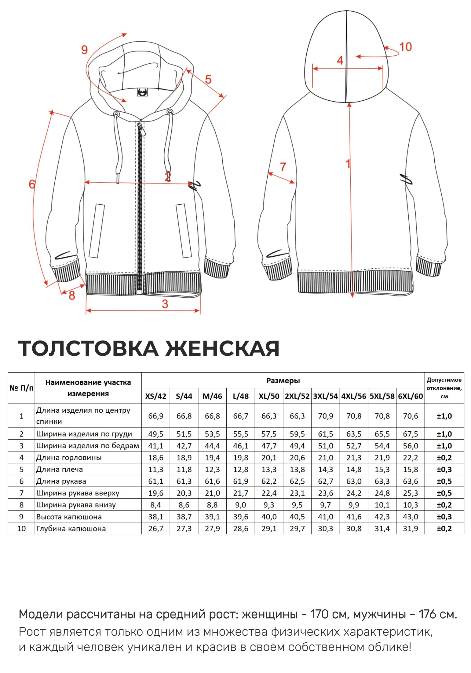 Параметры модели на фото -размер