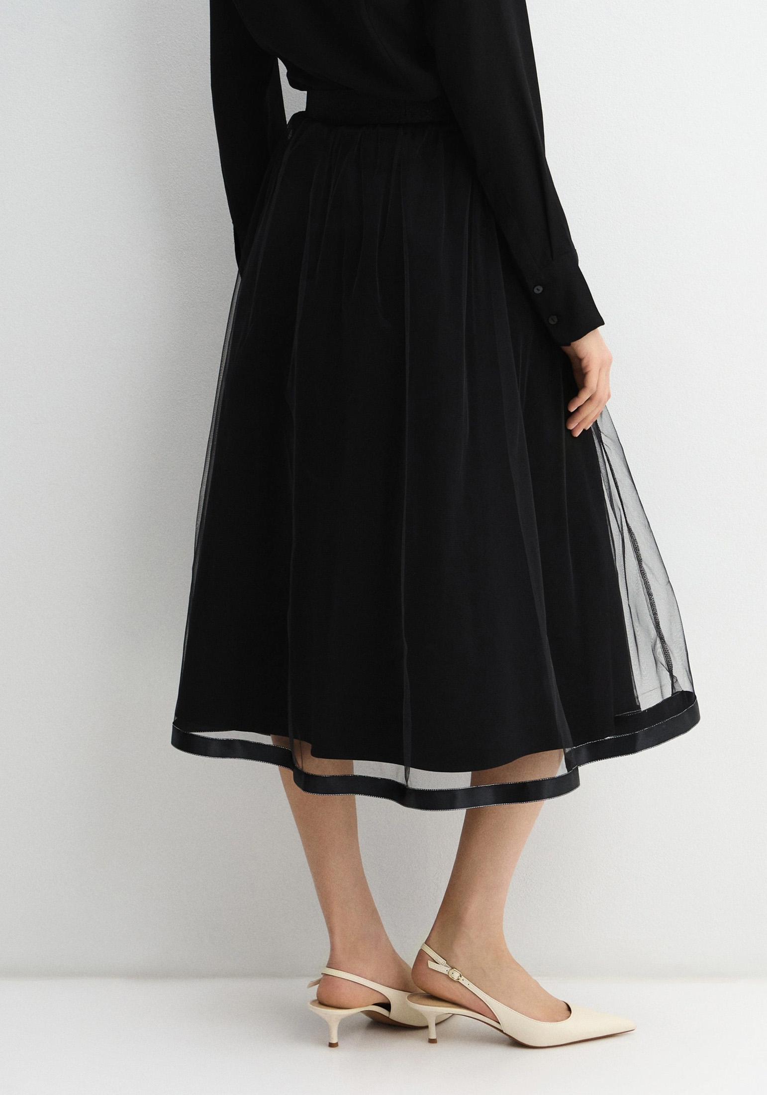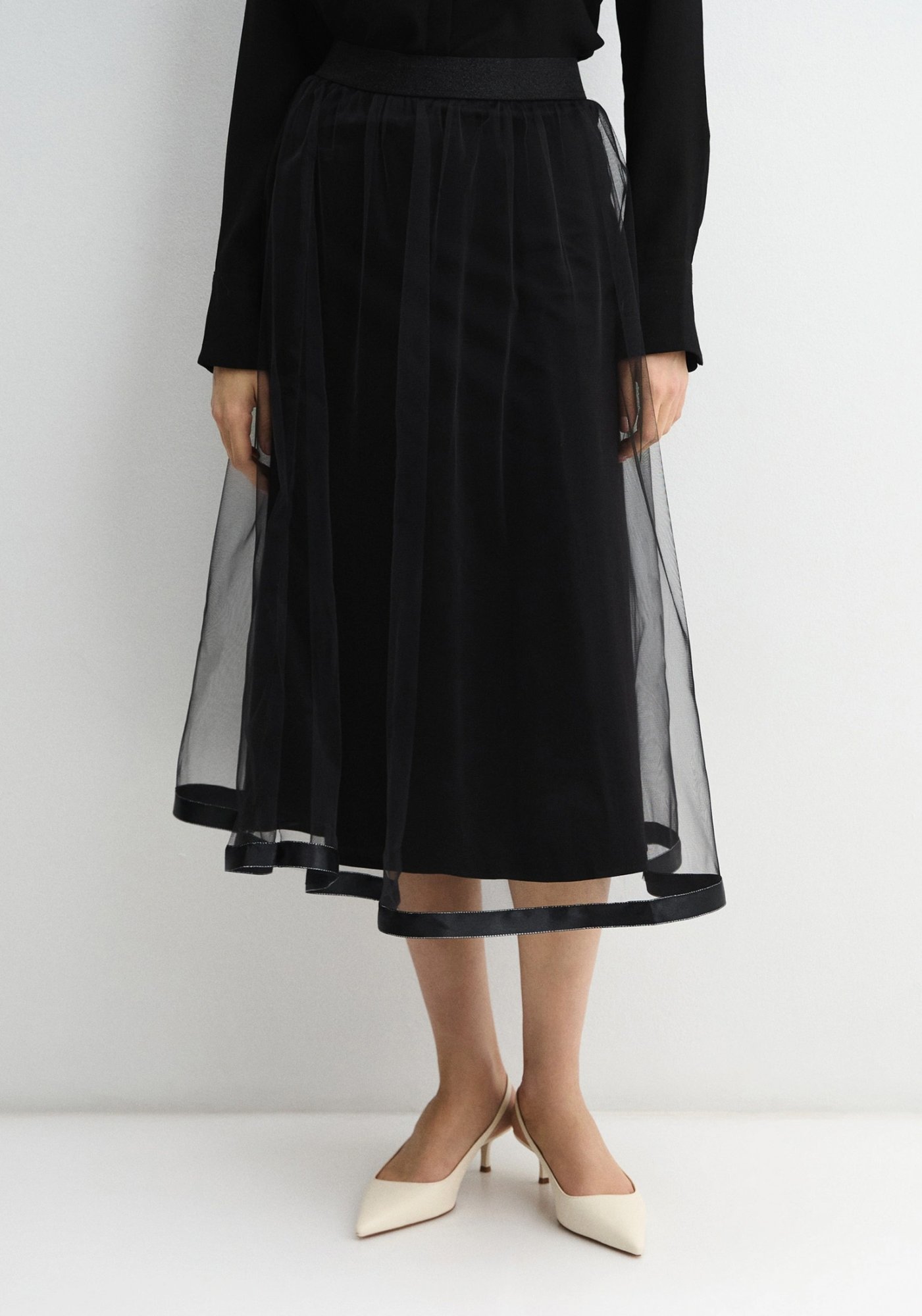 Невероятно красивая и стильная удлинённая юбка свободного кроя, выполнена из премиального турецкого трикотажа кулирная гладь в комбинировании с мягким фатином. Это модель точно должна быть в гардеробе каждой девушки, которая неравнодушна к стилю «Sport Chic». Пояс юбки изготовлен из трендовой широкой резинки с люрексом. Низ изделия декорирован атласной лентой. Пышная трапеция прекрасно подойдет для торжественных мероприятий, свадьбы, выпускных вечеров или обычной вечерней прогулки по городу. Идеально смотрится на любой фигуре, не сковывает движения и скрывает все недостатки. Гладить с изнанки. Стирка при t не более 30С. Деликатный отжим, отбеливание запрещено.